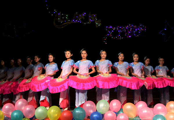 “好一朵美丽的茉莉花,好一朵美丽的茉莉花……” 伴着悠扬婉转、耳熟能详的旋律,23个女孩手中的扇子缓缓地“开”成了一朵娇艳的花。晚会还未正式开始,一段唯美清新的开场舞《茉莉花》,便将整个音乐厅带入到晚会的气氛当中。接下来的节目也都是精彩纷呈,相声《白蛇传》令人捧腹,两名同学一捧一逗,戏说《白蛇》,说学逗唱,不仅嘴皮子功夫利索,唱功也是了得,赢得了观众们热烈的掌声。