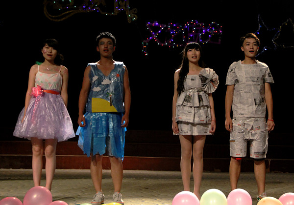 小品《皇上的小金子》现场耍宝。“哎哟哟,皇上你可别闹了好吗?”小太监竖起兰花指,加上尖细的声音,再加上“哎哟哟”的口头禅,引得台下哄堂大笑。创意环保秀《穹顶之下》,演员们身穿由塑料袋、报纸等制作的服装,向大家呼吁共建环保。舞蹈串烧《华美丝路》融合了古今中外四种风格的舞蹈,带给观众一场视觉盛宴。话剧《四海一家》用短短的几幕剧表现出我们的大学生活,酸甜苦辣千般味,最终一切矛盾都融化在老师同窗的大爱之中,正如台上所唱“因为我们是一家人”。