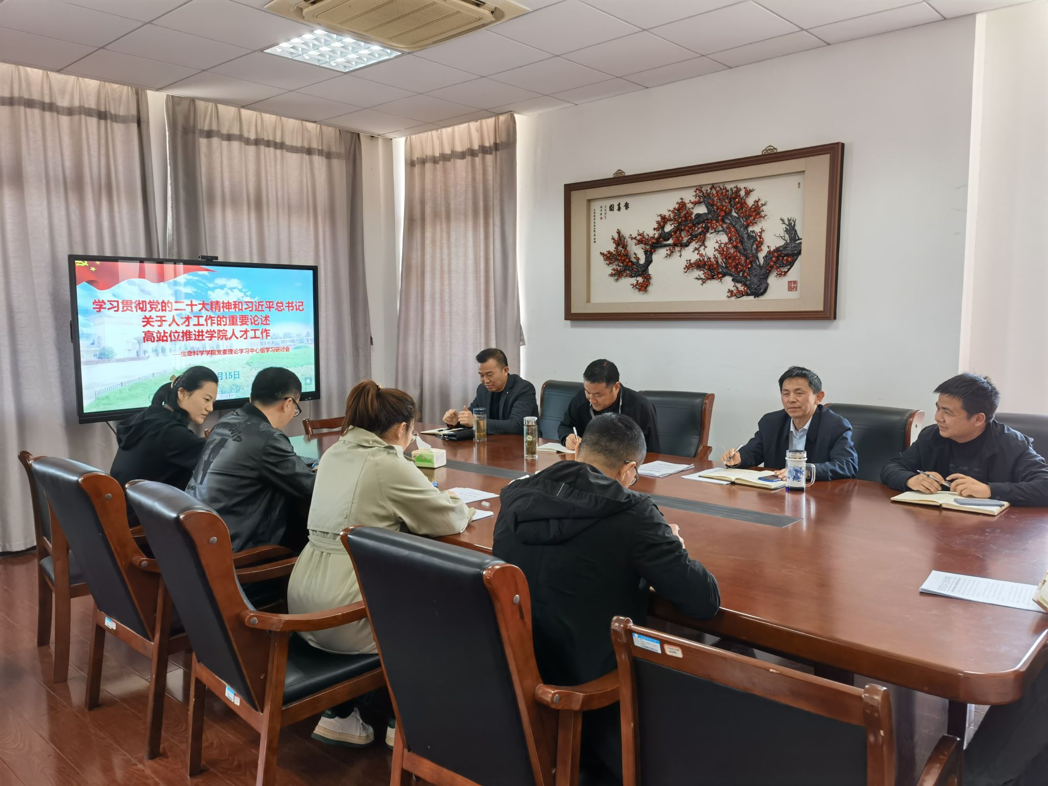 3月15日,生命科学学院党委理论学习中心组召开学习研讨会,深入学习贯彻党的二十大精神和习近平总书记关于人才工作的重要论述。中心组成员朱昌流、周多奇、吴彥、张辉、李从虎、张冉冉和青年教师代表宋婧、民主党派代表翟伟参加学习。学院党委书记朱昌流主持会议。
