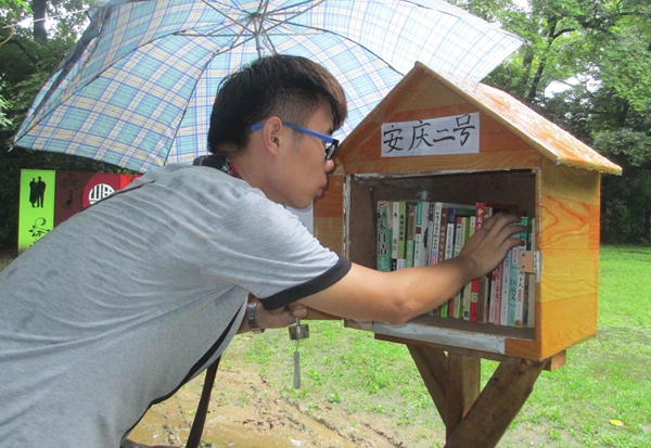 这项公益活动不仅方便了更多人的阅读需求,同时也在宣传诚信,宣传分享,宣传公益,宣传感恩。来自beat365官网计算机与信息学院与教育学院的大二学生郑军帅和杜正麒正是这次公益活动的发起人,他们自5月初萌生了在安庆建立鸟巢图书馆的想法,经过近两个月的大量准备工作,6月正式组队,在计算机与信息学院、教育学院领导的支持和团委华秀梅老师的指导下,最终确定将鸟巢图书馆落户于全国和谐社区建设示范社区菱湖新村和人文景观丰富的菱湖公园。发起人之一的郑军帅同学是一名受助学生,他表示,他正在用自己的行动回报社会,感恩社会,传递爱心,传递正能量。