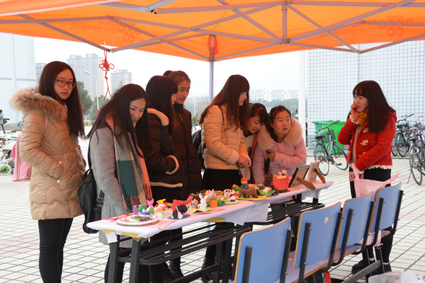 “我们尽我们最大的努力做好每一个手工,发挥我们学前教育学生的专业特长,一方面是提高了学前专业学生的专业自豪感,另一方面也是弘扬了传统文化,因为现实生活中有许多大学生忽视了传统文化,我们希望能通过这次手工展提高大学生对传统文化的兴趣。”高珊说。(文/学生记者 邓丽 图/学生记者 王巧)