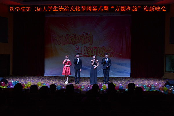 12月19日晚7点,图书馆东厅灯光闪烁,法学院第二届大学生法治文化节闭幕式暨“方圆和韵”文艺晚会在此举行。法学院院长焦少林、党总支书记詹德全、副院长朱留虎观看了晚会。
