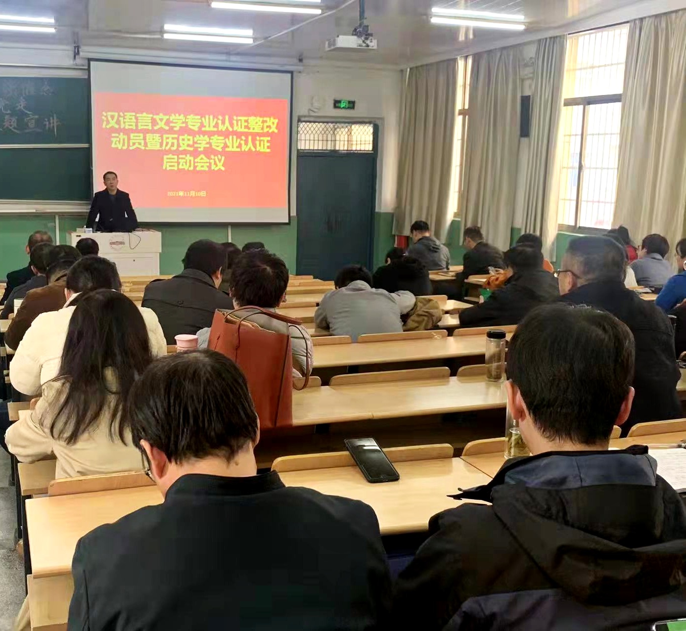 11月10日下午,人文学院在菱湖校区理二阶教室召开汉语言文学专业认证整改动员暨历史学专业认证工作启动会。学院领导班子成员和全体教职工参加了会议。会议由学院党委书记张红飞主持。