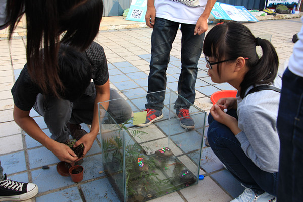 活动现场,生物技术专业的植物生物学老师陶冶也在为同学们进行指导。“美国曾经在沙漠中建立一座微型人工生态循环系统,在密闭状态下进行生态与环境研究。我们的生态缸也是模拟这个著名的实验。”关于这次活动,他评价说:“自己采集材料,动手制作生态缸,不仅可以亲近大自然,锻炼能力,还能培养专业兴趣。这不仅仅限于一次团日活动,更是一个长期的活动。通过观察自己生态缸的变化可以更好地了解自然的变化,还可以看出自己对生态变化认识的不足之处。”(文/学生记者 孙燕婉 图/学生记者 程汗)