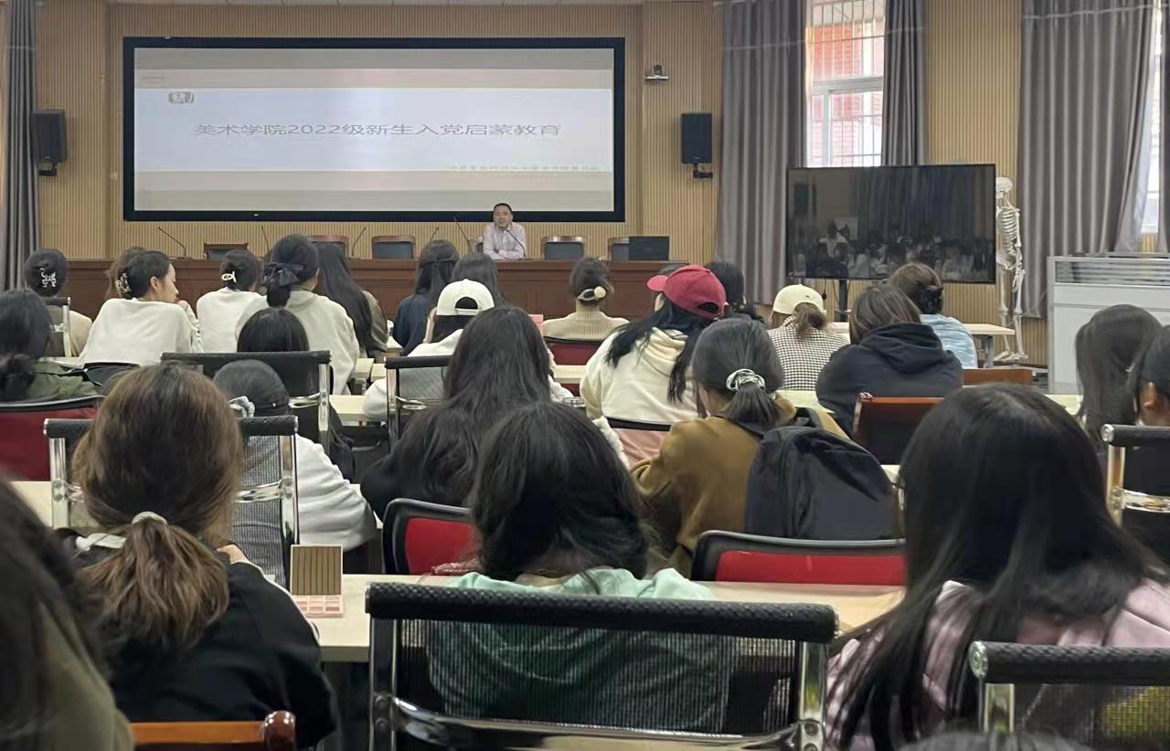 近日,美术学院党委围绕2022级新生入党启蒙教育,分专业、分批次组织开展了主题鲜明、内容丰富、形式多样的系列活动,美术学院党委书记孙根华、党委副书记金忠良、学生党支部书记、新生辅导员、2022级全体新生参加了系列活动。