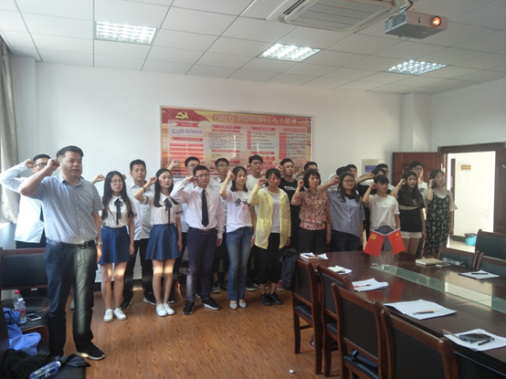 王开友带领大家一起学习了习近平总书记5月2日在北京大学考察时发表的重要讲话。带领全体党员面对鲜红的党旗,重温入党誓词,庄严宣誓,再一次接受党性的洗礼。(资源环境学院)