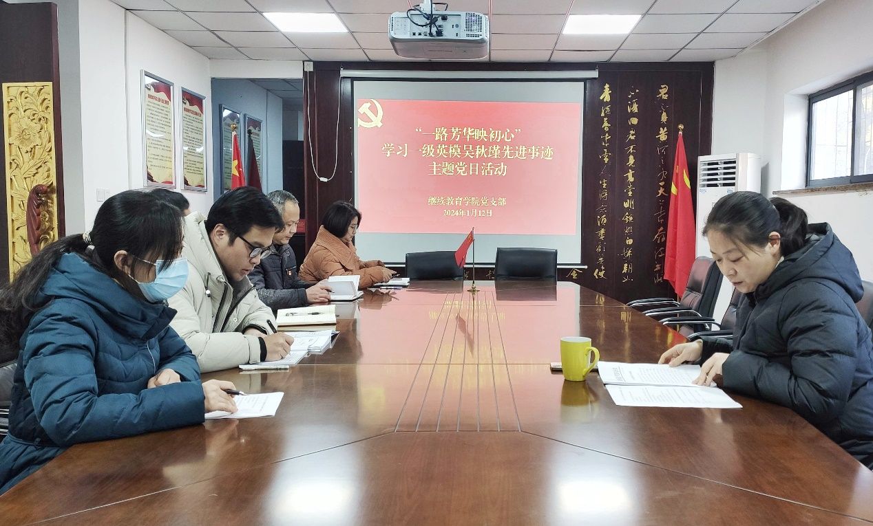 1月12日,继续教育学院党支部开展“一路芳华映初心”——学习一级英模吴秋瑾先进事迹主题党日活动,支部全体党员参加活动。