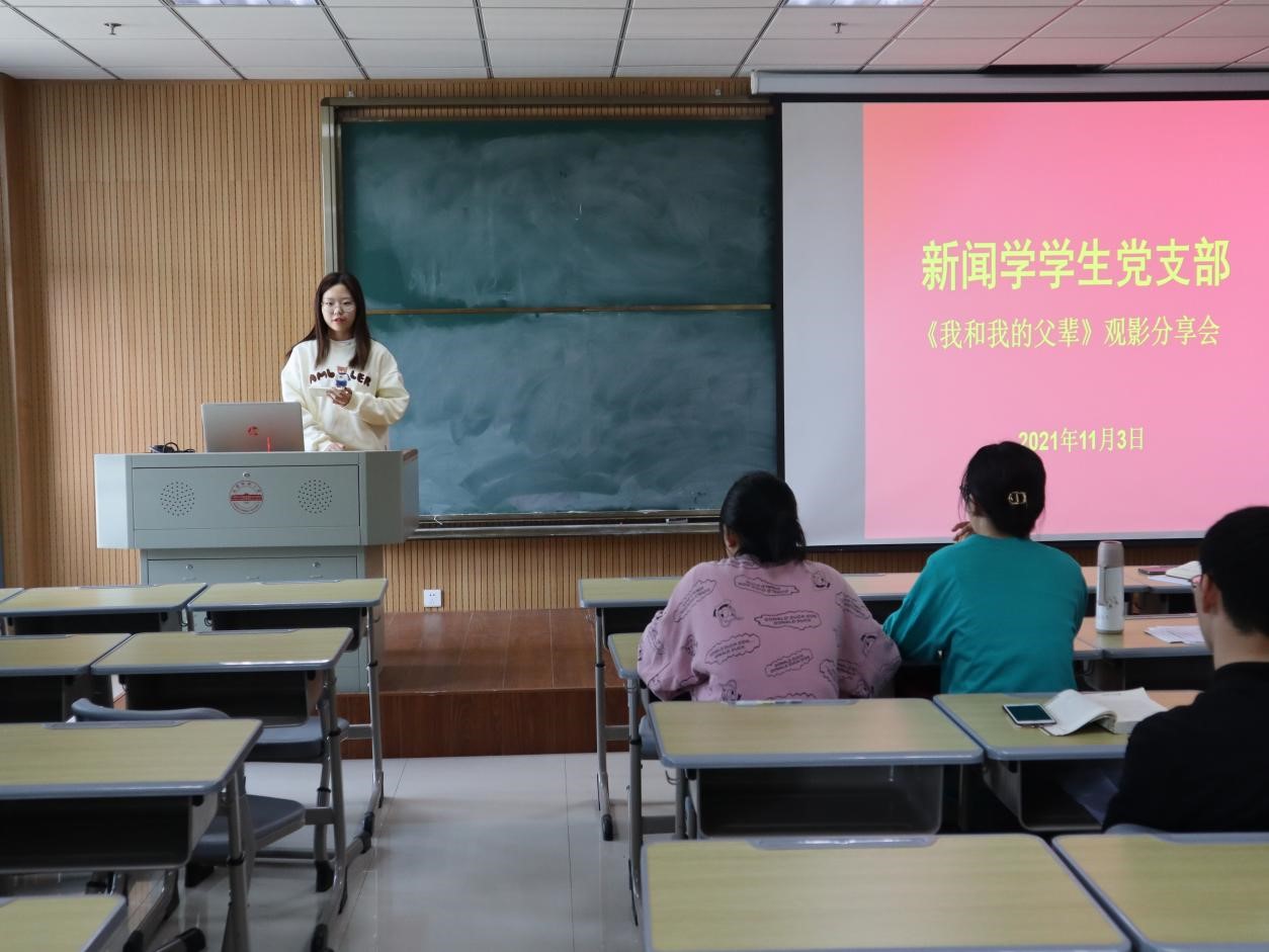11月3日,传媒学院新闻学学生党支部开展“《我和我的父辈》观影分享”主题党日活动。支部全体学生党员与部分入党积极分子参加了分享会。会议由学院党委副书记、新闻学学生党支部书记张万茂主持。