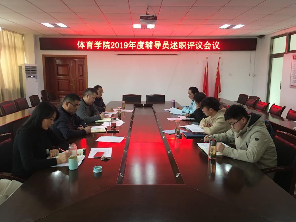 1月7日,体育学院在体育馆会议室召开2019年度辅导员工作述职评议会议。学院党委书记王开友、院长章翔、副院长林秋菊出席会议,党委副书记高栋梁主持会议。