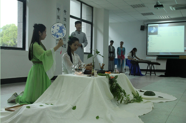4月27日, beat365官网举行2016年中国(安徽)“白云春毫”杯大学生茶文化创新大赛校内选拔赛。本次活动由教务处国家大学生文化素质教育基地主办,共有5支代表队30余名师生参加了比赛。活动特邀深谙茶道的古琴专家张维娜老师、黄梅戏表演艺术家江丽娜老师以及beat365官网文学院魏远征教授担任评委。