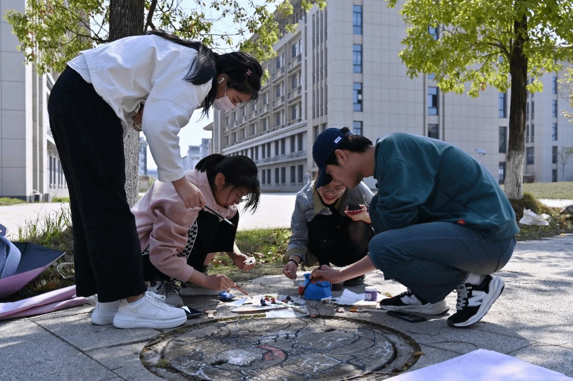 本次活动在培德桥南边至机械设计制造及其自动化工程实训中心中间思齐路举行。共有九个井盖,同学们分成九个团队,集体进行绘制。2022级新闻传播学专业魏云燕说:“此次活动不仅锻炼了我的绘画能力,还让我结识到了许多有共同爱好的小伙伴。”