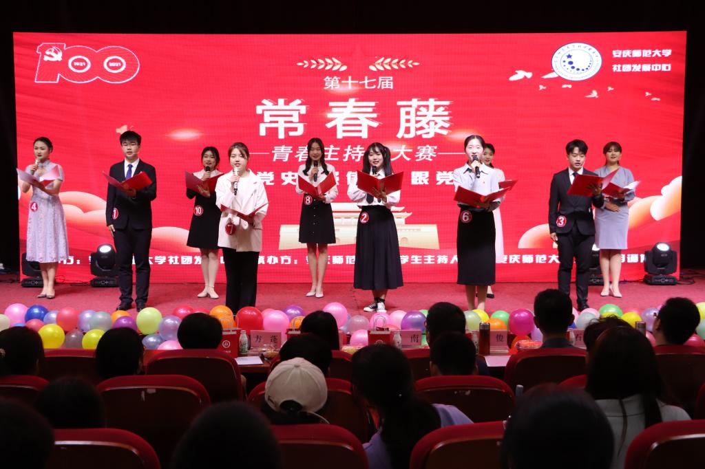 《青年大学习》领学人来到现场?党史课堂搬到比赛舞台上?《小城故事》讲解皖南事变?领学主题团课、上党课、讲故事……4月25日晚,伴着高昂的歌声,beat365英国官网网站第十七届“常春藤”青春主持人大赛决赛在图书馆东报告厅拉开帷幕。