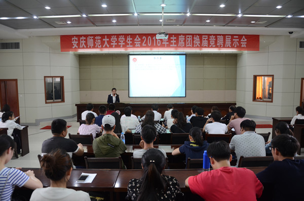 5月25日下午, 2016年学生会主席团换届竞聘展示会在行政楼一楼会议室进行。