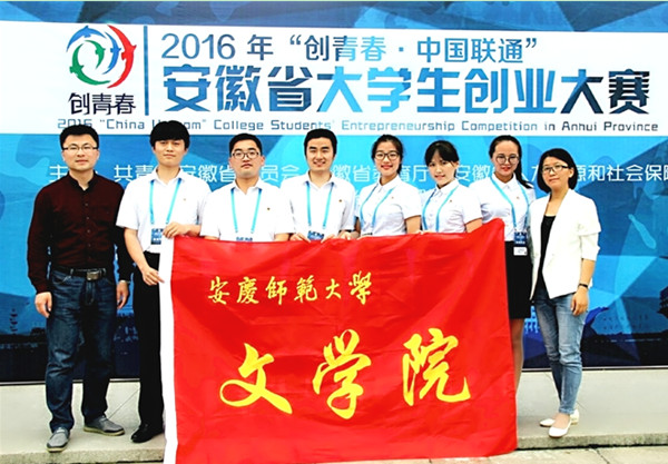5月29日,2016年“创青春”安徽省大学生创业大赛在安徽师范大学举行,全省共126件作品参加金银奖的角逐。最终文学院方瑞老师指导的作品《岳西县玖智电子商务有限公司》获得创业实践类金奖,杨永久老师、程莹老师指导的作品《安徽和动力企业管理咨询有限公司》获得创业实践类银奖,取得了文学院参加安徽省大学生创业大赛的最好成绩。金奖作品将代表安徽省参加“创青春”全国大学生创业大赛。