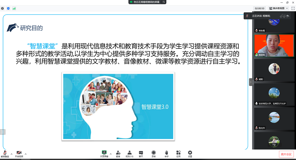 开题答辩会包括学员汇报和评委提问两个环节,国培班学员从论文的选题意义、国内外研究现状、研究方案、拟解决的问题和创新点等方面展开陈述,答辩评委认真审阅开题报告,并根据学员的开题报告和现场答辩情况提出了中肯的意见和建议。学员们在与评委展开充分交流过程中,认真记下需要重新思考、修改或进一步完善的内容。整个开题答辩环节,时间安排合理紧凑、气氛张弛有度。