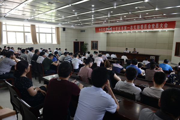 7月21日下午,机关一总支召开党员大会,进行学校“两委”委员候选人第一轮推荐工作,选举出席学校第一次党代会代表。113名党员参加会议,机关一总支书记王先民主持会议。