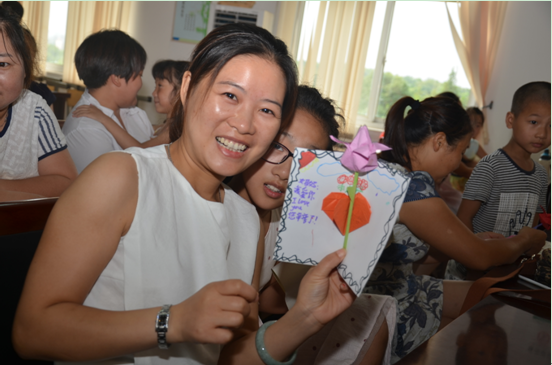 表演结束后,孩子们向各位老师和家长展示了精心制作的手抄报,并将亲手制作的贺卡和手工花送给自己的亲人,现场氛围十分温馨。家长纷纷表示收到孩子亲手制作的贺卡和小制作很惊喜也很感动,很感谢志愿者们对孩子们的耐心教育,倾情付出,短短六天,孩子们的变化让他们体会到教育的神奇力量。“孩子平时比较内向,不太爱说话,我一直比较担心她的人际交往能力。在志愿者老师们的鼓励和引导下,她开始主动参加活动、和别人交流,我很感谢大学生老师们。”一位学生家长在接受采访时说道。(王婧)