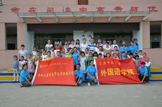 8月26日下午,外国语学院流动儿童家庭帮扶实践队在安庆市大观区十里中心学校举行以“缤纷夏日 快乐童年”为主题的汇报演出,大观区团委书记吴平,团队指导教师以及十里中心学校校长徐诗鹏等参加了本次活动,30多名小学生及他们的家长参与观看了汇演。