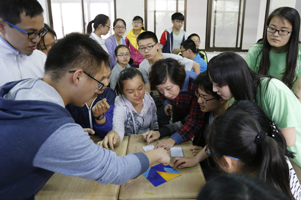 本次活动的参与者共93人,他们来自安庆一中高一年级理科12班与文科6班,以班级为单位分两次进行。“你们的目标是全体的成绩在30分钟内累计1000分,我们会给你们分发任务纸与七巧板。”贾涛老师向学生们介绍说。