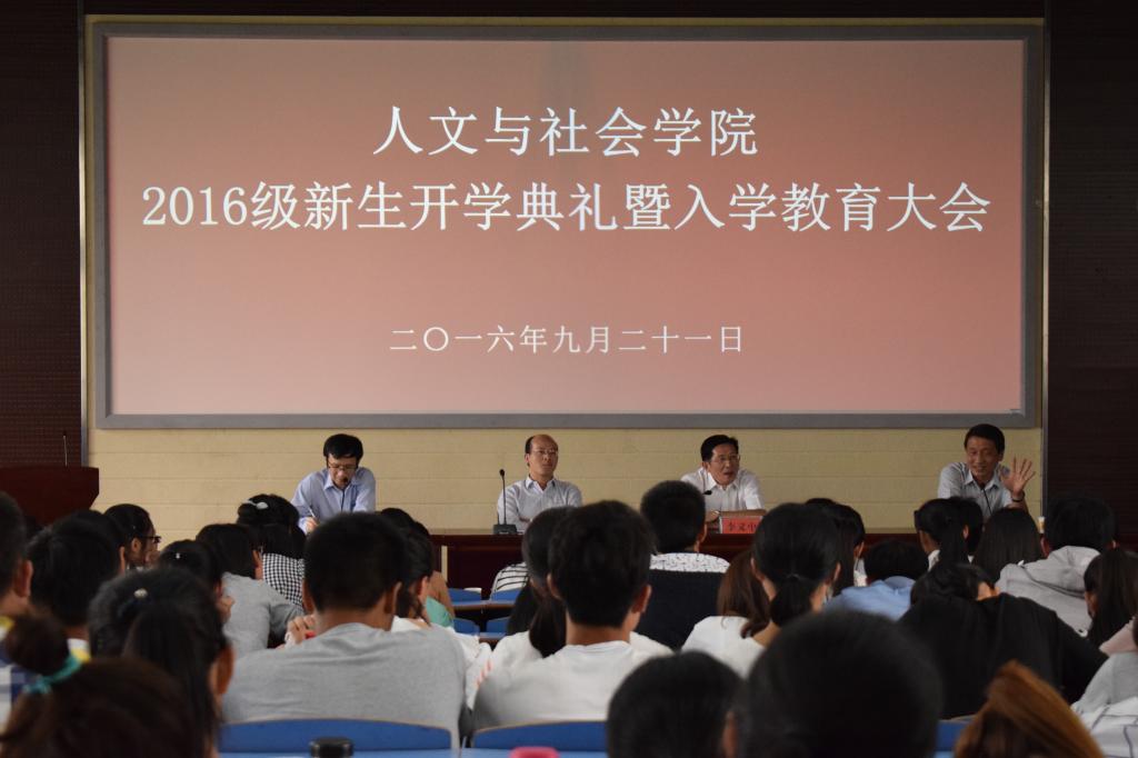 9月21日,人文与社会学院在文津楼111教室召开了2016级开学典礼暨入学教育大会。会议由党总支副书记许俊杰主持,院长李义中、党总支书记韦长发、副院长张祥稳、各科室负责老师、各教研室主任、新生辅导员以及2016级全体新生参加了大会。