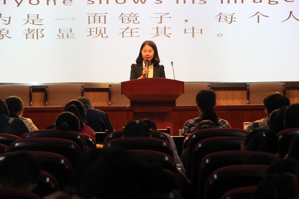 师范英语专业2014级的张文俊选择了阐述自己的亲身经历,以表达交流的重要性。“我觉得选手的表现很棒,演讲的时候很有腔调,很有感情。”商务英语专业2016级的范玲艳在观众席上对台上选手的表现表示称赞。