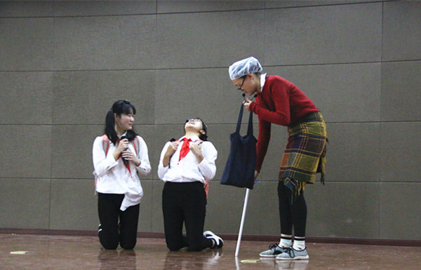 除此之外,小品《我不跟你走》则是以拐卖儿童的事件为原型,让大家能够重视儿童被拐卖的问题,引人深思,来自广播电视学2016级的高洁霞更是将人贩子这一形象演得栩栩如生,让观众们沉浸在剧情中。