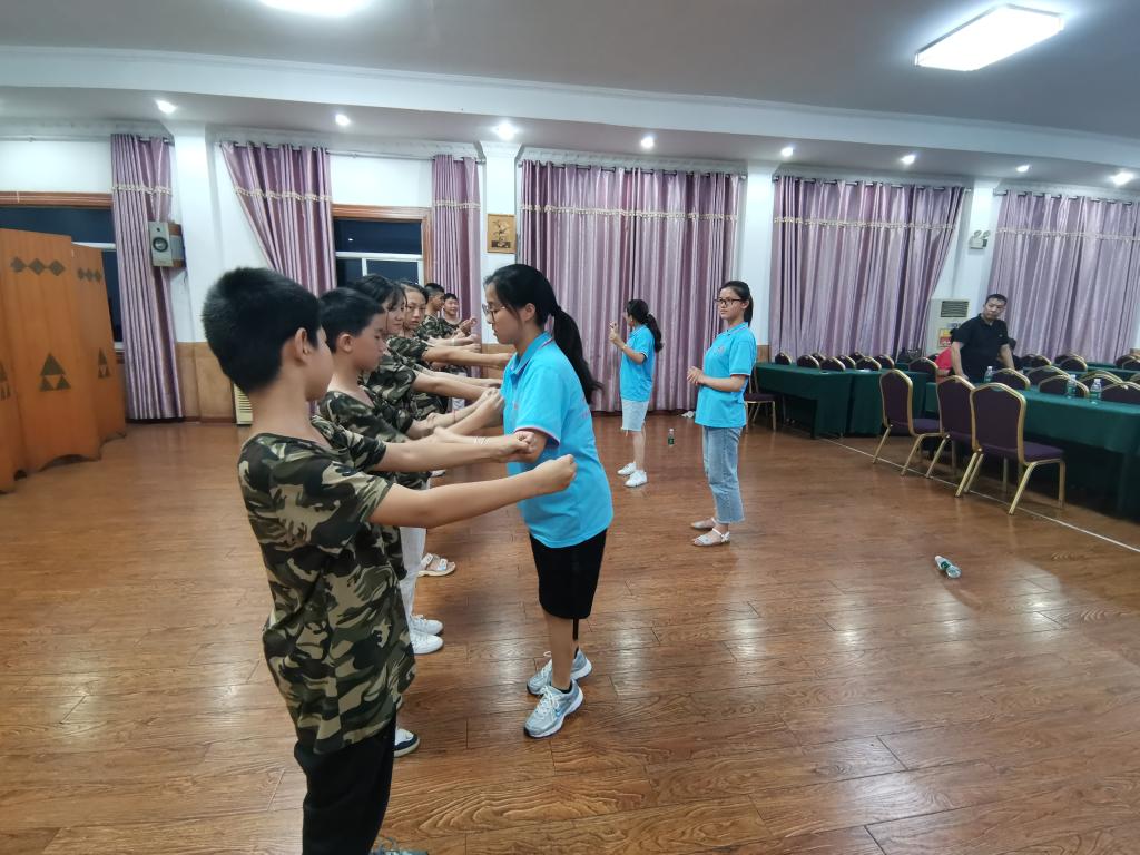舞蹈对于丰富青少年审美经验,开发艺术潜能,促进青少年动作与身体机能的发展等有重要意义。舞蹈歌曲《在灿烂阳光下》的选择也是对实践团队“童心向党,乡村逐梦”活动主题的响应,“从小爷爷对我说,吃水不忘挖井人,曾经苦难才明白,没有共产党,哪有新中国……”,“林簌泉韵,鹊笑鸠舞”舞蹈课进一步激发夏令营全体学生知党、爱党、跟党走的情感,培育美好心灵,努力学习、全面发展、勇于开拓进取的精神风貌。