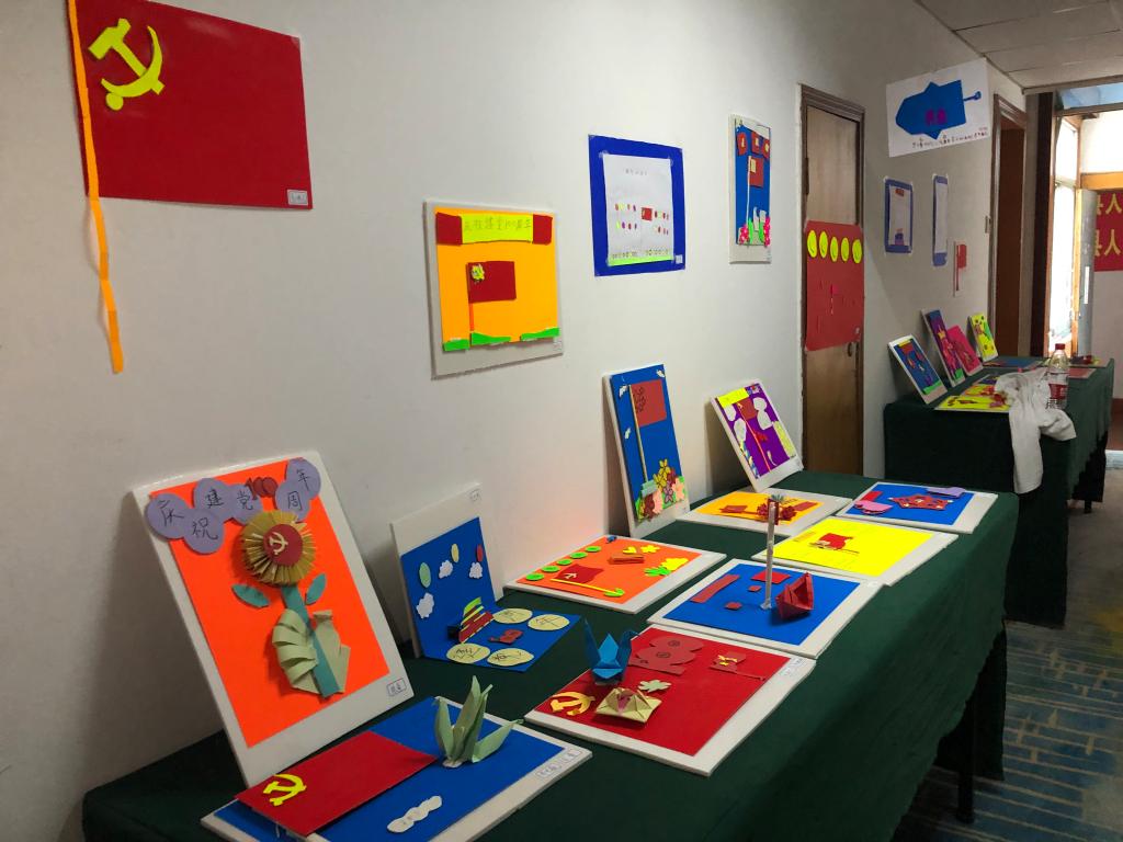 为庆祝百年华诞,继承和发扬党的优良传统,加强红色题材文艺创作在党史学习教育中的功用,实践团队开设“翰墨飘香,丹青溢彩”手工课,带领夏令营学生以经典题材创作党史相关作品,传播红色文化。