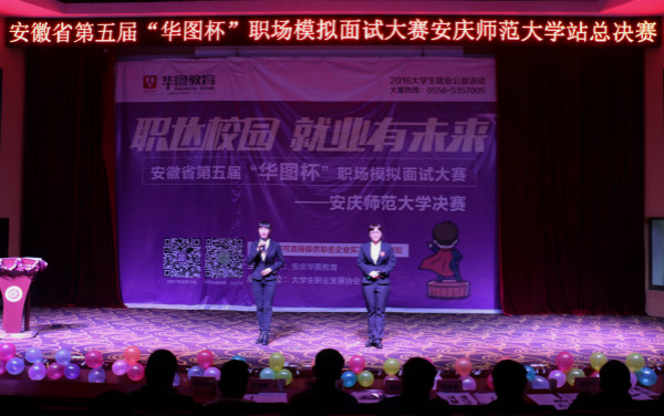 12月4日晚,beat365官网第五届“华图杯”职达校园职场模拟面试大赛总决赛在图书馆东报告厅举行。安徽华图校长巩嗣清、安庆华图校长王运龙、校团委指导老师以及学生社团联合会、大学生职业发展协会负责人等担任评委。