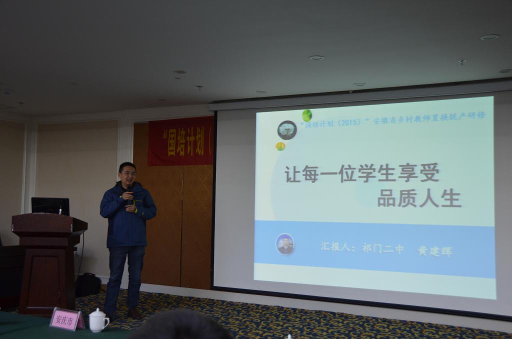 总结提升阶段,学员先分组交流,自我总结,然后班级汇报,经过层层选拔,最终确定青阳县的陈桂林,祁门县黄建辉、方少蒙,滁州市南谯区刘勇、王芳,宿松县的严皖军、张小兰、朱宇婷等八位学员在结业仪式上进行成果展示。国培带来的观念的改变和理念的更新成为展示中的亮点。