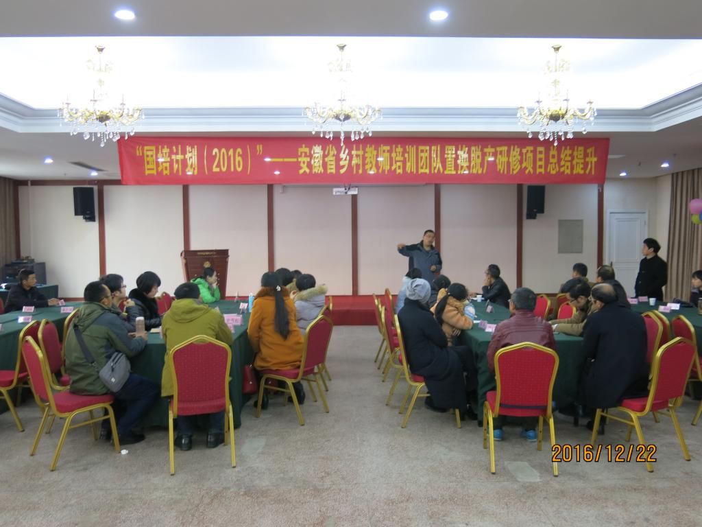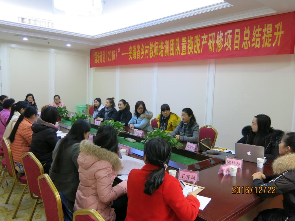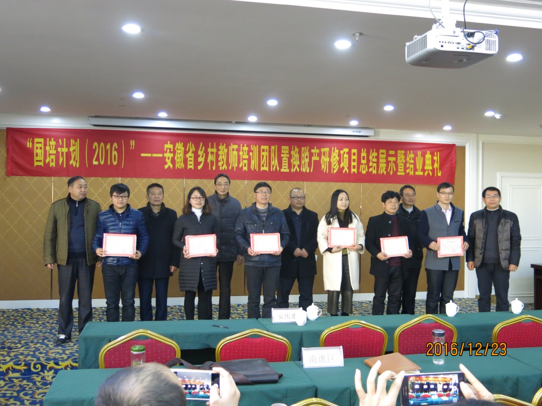 12月23日上午, beat365官网承担的“国培计划(2016)”——安徽省乡村教师培训团队置换脱产研修项目举行成果展示汇报会暨结业仪式。beat365英国官网网站教师教育中心负责人、安庆市师训中心负责人和宿松、祁门、青阳、滁州市南谯区四个项目县区教育分管领导及师训部门负责人参加了学员的成果展示汇报会,并为学员颁发结业证书和荣誉证书。