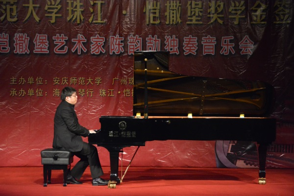 接着,在场师生欣赏了恺撒堡艺术家陈韵劼的音乐会。陈韵劼是当代中国优秀的青年钢琴家,中央音乐学院钢琴系主科教研室青年教师,曾赴美学习十年。他是中国首位公演全套斯克里亚宾奏鸣曲的钢琴家,并多次在重大国际钢琴比赛中获奖。陈韵劼演奏了李斯特《十二首超技练习曲》中的五首,快速的音阶、琶音、双音、八度音、装饰音和长时间的震音、颤音交织在一起,所有高难度的技巧形成了一个绚丽多彩的音响世界。陈韵劼的演奏既表现了完美的技术,又表现出音乐完美的形象;还演奏了贝多芬《月光奏鸣曲》和中国作品《兰花花》,最后,在观众的热情掌声下,返场演奏了《热情奏鸣曲》和《谷粒飞舞》等。陈韵劼先生五指飞轮,让现场观众充分感受到了音符流淌的快乐,令人神往,让人陶醉,充分展现了其演奏技法的精致细腻以及扎实的功底。