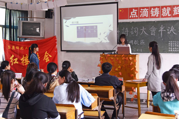 本次诗词大会比赛,是红楼诗会受“中国诗词大会”的启发和影响,从春节期间就开始策划的,形式上也多是借鉴“中国诗词大会”。“题型是学习‘中国诗词大会’的,题目是找文学院的大四的学长和学姐一起出的,他们查阅了很多唐诗宋词的书,而且学了四年的专业知识,懂的多一些。”比赛负责人沐敏丽同学说,一遍遍地策划,一遍遍地校对题目,准备这个比赛,红楼诗会的老师和同学们都很辛苦。