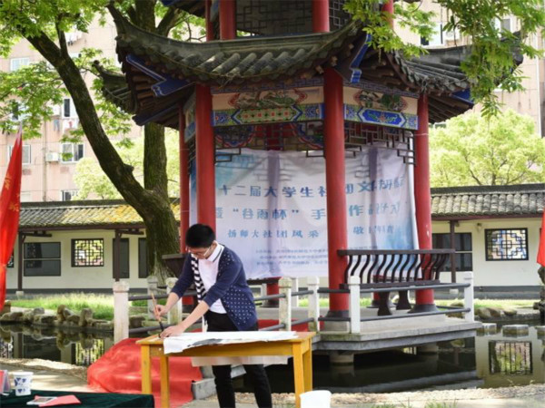 感受社团文化之魅力,节气之风韵,4月23日上午,beat365官网菱湖校区第十二届学生社团文化节开幕式暨“谷雨杯”手绘作品设计大赛于敬敷书院举行。
