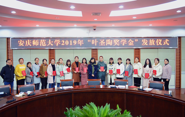 11月27日,学校在行政楼二楼会议室召开2019年“叶圣陶奖学金”颁奖大会。学生处副处长华秀梅,获奖学生及师范专业学生代表参加了颁奖大会。