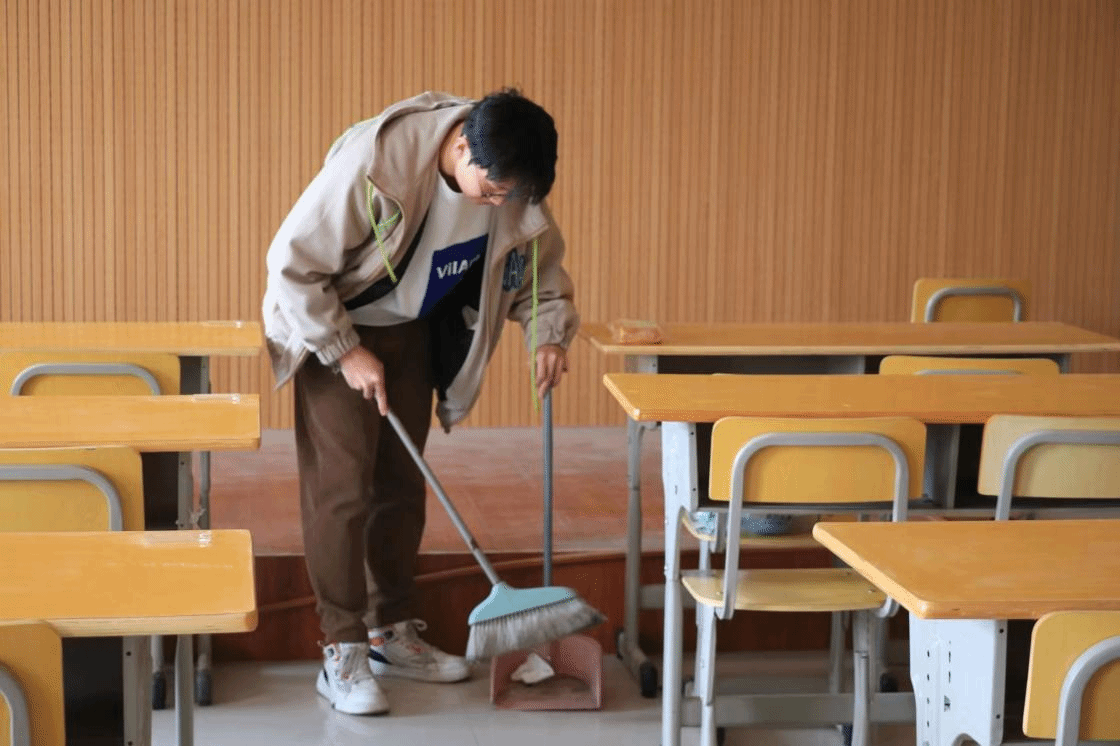 新闻传播学类专业2022(4)班的梁宏宇在接到征集志愿者的通知时主动申请去打扫自习室,“乐于助人是中华民族的传统美德,我听说这是为考研学生提供的自习室,想到我将来也会是其中一员,也会有学弟学妹来帮助我们打扫卫生,所以我要来出一份力,”他说,“就算不能减缓考研的压力,也至少可以为他们创造一个较为舒适和干净的学习环境,那么这件事情就非常有意义。”