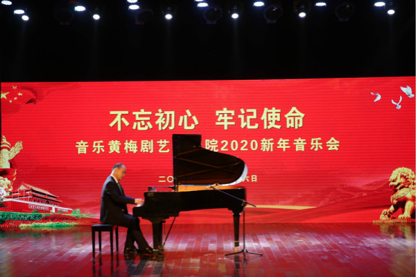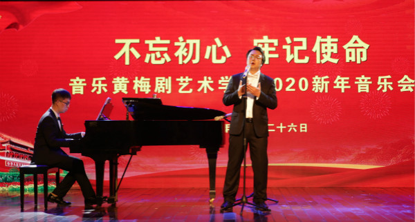 海上生明月,天涯共此时。歌唱祖国歌声犹在,圆梦小康心潮澎湃,正值辞旧迎新之时、夺取伟大胜利之际,12月26日晚,音乐黄梅剧艺术学院在音乐厅举办了“不忘初心、牢记使命”2020新年音乐会,师生携手歌盛世,载歌载舞贺新春。学院党总支书记李新建、副院长杨瑾、副书记肖之进及近400师生欢聚一堂,观看了演出。