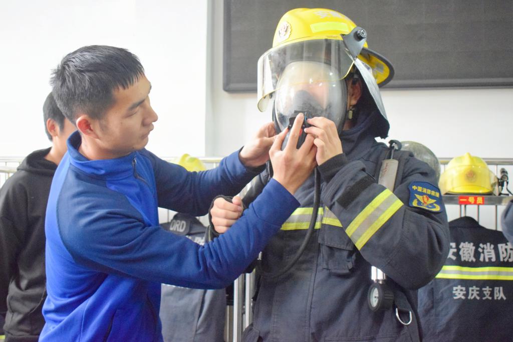 消防员向同学们说明了出警前穿戴消防衣的步骤和注意事项。随后,在消防员的指导下,同学们进行了消防衣穿戴大比拼活动。2021级历史学3班的刘敏体验过后说:“消防服很笨重,穿上去也比较困难,真是无法想象消防员经过怎样刻苦的训练才能做到在火场上穿梭自如,这让我认识到消防工作的辛苦,同时也让我在生活中更加注意安全用电用火。”