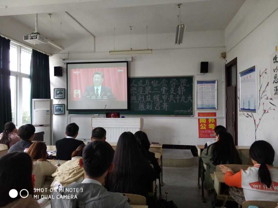 10月18日,中国共产党第十九次全国代表大会在北京人民大会堂隆重召开,习近平总书记代表十八届中央委员会向大会作报告,人文与社会学院学生第二党支部组织全体党员和入党积极分子观看开幕会盛况。与会师生认真聆听习近平同志的报告,并不时记录。