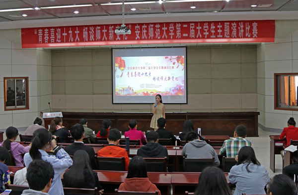 “我们想通过次比赛让同学们更加了解校园发生的变化,引导同学在今昔对比中感受幸福生活,感恩党和政府。同时,本次比赛也是在向砥砺奋进的五年的安庆师大献礼。”主题演讲比赛负责人宋志雄说。 (学生记者 黄罗曼)