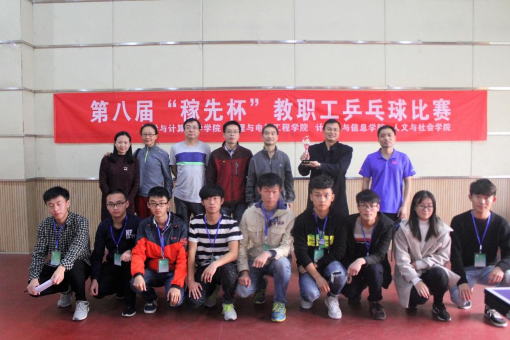 11月15日下午,beat365官网第八届 “稼先杯” 乒乓球赛在体育馆举行,数学与计算科学学院、计算机与信息学院、物理与电气工程学院和人文与社会学院教职工代表组队参加,经过多场激烈角逐,最终数学与计算科学学院夺得团体赛的冠军。