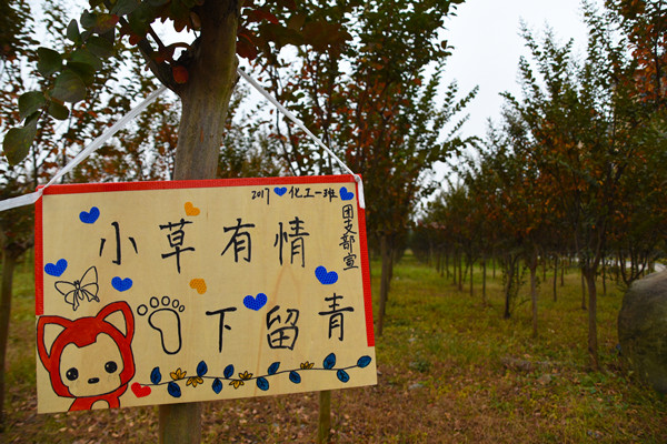 卡通标识牌的内容有三个主题,分别是爱护草坪、禁止游泳和不要乱扔垃圾,在原有的标识牌之外,以一种卡通、有趣的方式劝告。“有的标识牌放置在后山上,因为山上清理垃圾难度比较大,我们希望通过标识牌提醒同学们用心呵护校园,也给工作人员减轻工作负担。”刁家亮说。