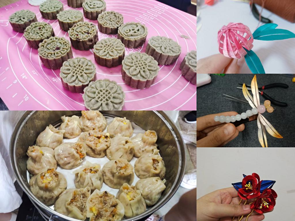 近日,外国语学院公共俱乐部劳动实践课程也持续热烈开展。在端午节来临之际,“小当家”中式食点俱乐部成员们利用面粉、牛奶、黄油等食材制作奶黄包、绿豆糕,与清明节制作青团时相比,成员们的手法愈发熟练,烹制的糕点也更加精致美味。在动手制作传统美食的同时,同学们对传统节日和习俗的了解也进一步加深。馨语花艺俱乐部的成员借助皱纹纸制作纸艺花,他们将各色纸卷裁剪至所需大小,连续叠放对折出不同形状,最后用胶水、铁丝等工具进行固定,一朵朵栩栩如生的康乃馨、百合纸艺花在成员们的巧手下诞生了。
