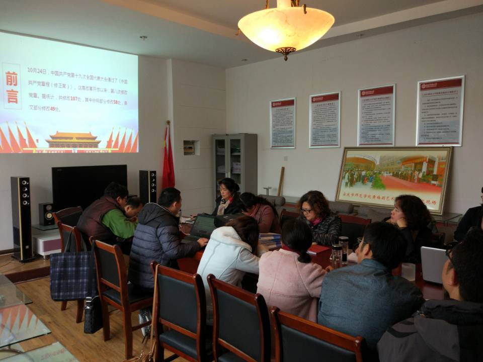 11月29日下午,音乐黄梅剧艺术学院教工党支部召开学习会,集中学习新党章。