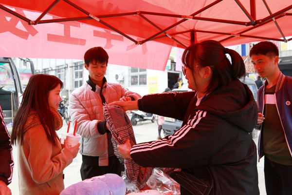 活动现场,爱心超市的工作人员在为来来往往的师生介绍商品,两大站点吸引了很多同学驻足。电子信息科学与技术专业2017(1)班的赵晓伟挑中了一双保暖的手套,“在学校学生会官方QQ上得知这个活动筹集的钱会用在公益上,所以特地来支持下。”赵晓伟说,在买自己需要的物品时,也可以献爱心,这是一件非常有意义的事情,所以很乐于参与。
