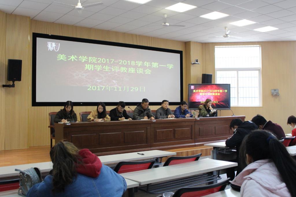 日前,美术学院召开2017-2018学年第一学期期中教学质量学生评教座谈会,院党总支书记鲍硕来、副院长林柏峰、副书记许世平,学院青年教师代表,各班级学生代表共60余人参加了会议。