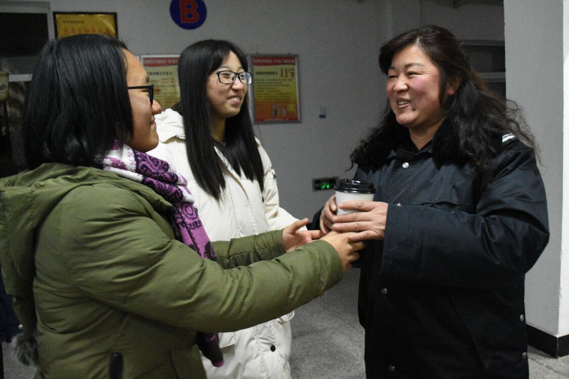 “叔叔,平时受您照顾了,天这么冷喝杯热茶吧。”接过同学们递来的暖心热饮,9号学生公寓的宿舍管理员黄全富有些不好意思地笑了。他说,自己在龙山校区已经做了10年宿管,从2号楼到4号楼、8号楼、9号楼,几乎每天都和同学们相处在一起。“天气这么冷,同学们还特意跑出来给我们送热茶,真的很暖心,这些都是我们应该做的事,不觉得辛苦。”
