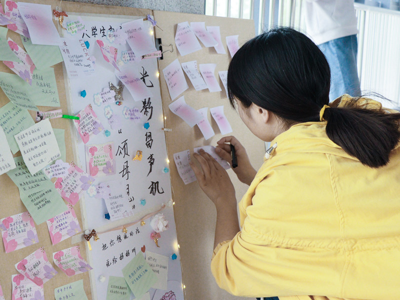 “我不是一个很善于表达的人,有很多话想要对妈妈说却不好意思说出来,而通过纸笔我能很好地向妈妈表达我的感谢。”小学教育专业2021级(5)班的学生李佳慧表示,在得知这次活动后,她第一时间就报名参加,因为想要通过这次机会表达对妈妈的感谢和关心。“在写便利贴的时候想到了妈妈平日里对我的关心,我突然觉得我对妈妈的关心还不够,以后我一定要多多关心妈妈。”