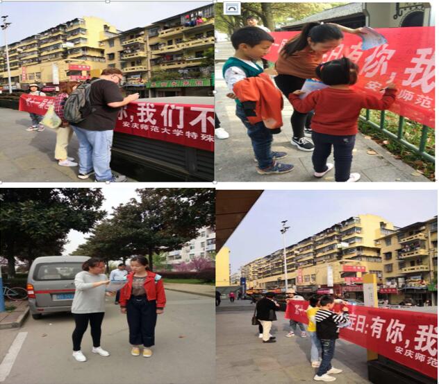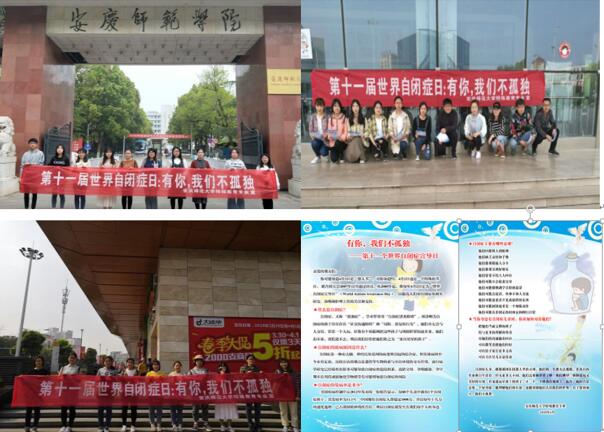 不愿和你对视,不愿和你交流,总是对世界充耳不闻,但其实他们有视力,有听力,也有语言。人们把这样的孩子叫做“星星的孩子”——自闭症儿童。他们犹如天上的星星,旁若无人,独自生活在自己的世界里。今年4月2日是第十一届世界自闭症日,为了让广大市民进一步了解和关注自闭症儿童,4月1日上午由教育学院特殊教育专业全体师生共同开展的“有你,我们不孤独”世界自闭症日公益宣传活动在安庆市火车站、汽车站、八佰伴、吾悦广场以及新老校区同时进行。