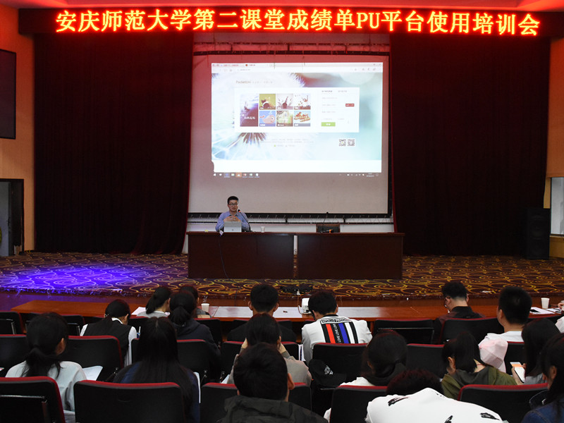 4月10日下午,校团委举办“第二课堂成绩单”计划推进暨PU平台使用培训会。校团委有关负责同志、各学院团总支负责人、PU口袋校园客户经理郑猛及300余名学生骨干参加了会议。会议对beat365官网全面推进“第二课堂成绩单”计划工作进行了部署和动员,并就如何使用PU平台,稳步推进“第二课堂成绩单”工作进行了专门的业务培训。